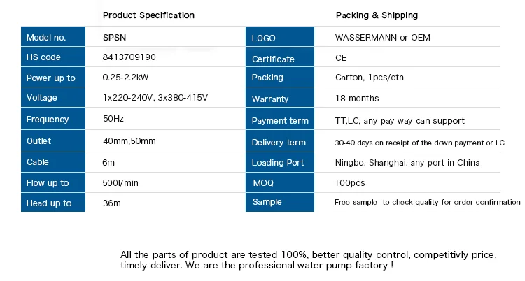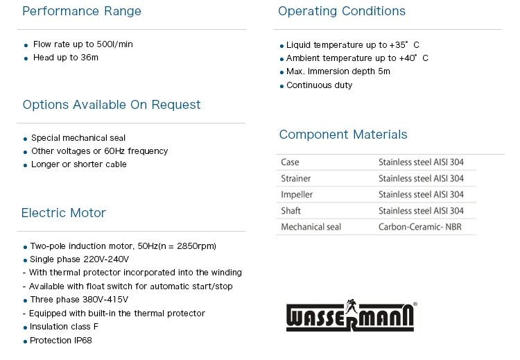 0.25kw 2.2kw stainless steel electric submersible drainage water pump