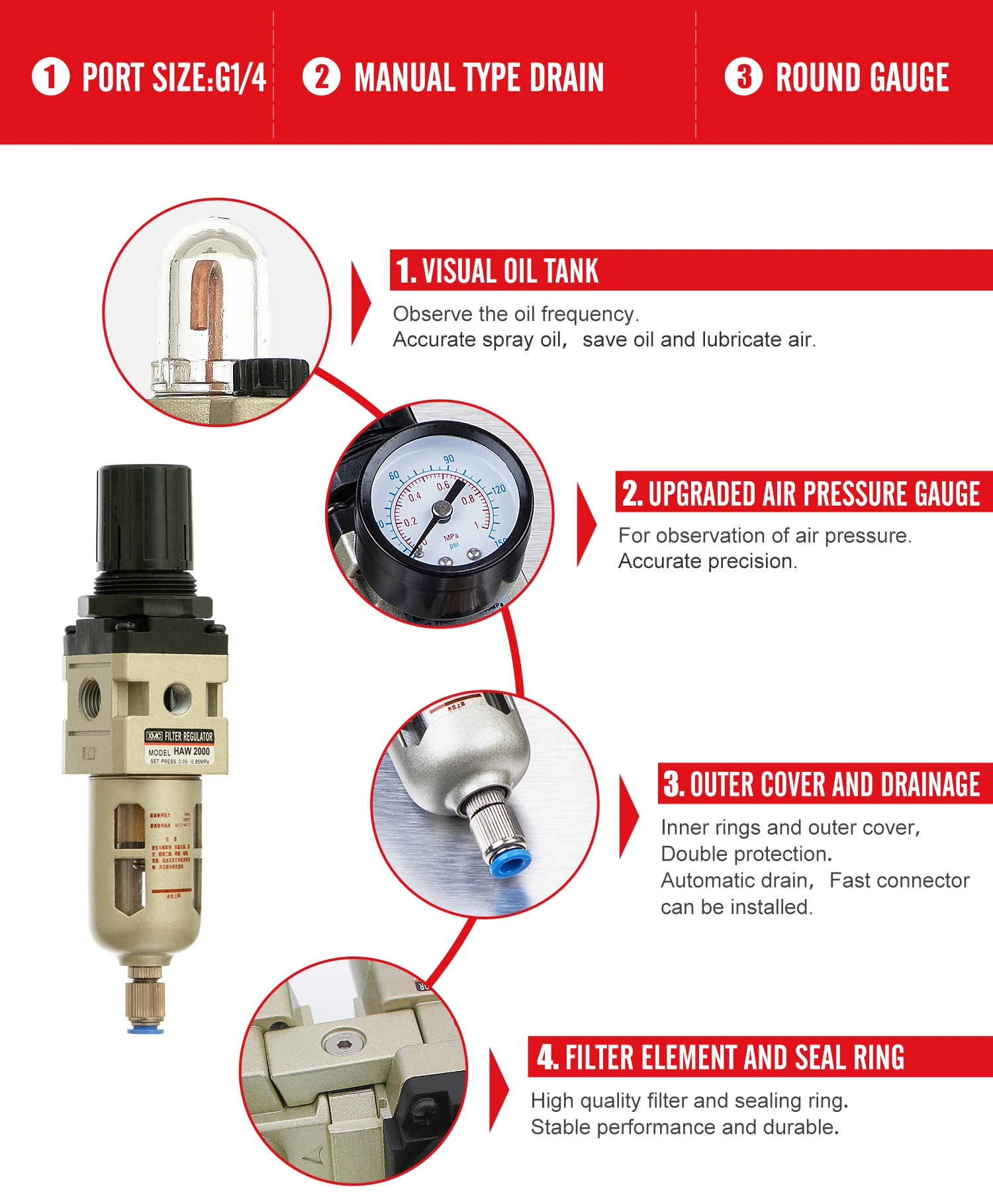 XMC Air Tools Pneumatic HAW2000-02 piggyback SMC Type mini Air Filter Regulator for Compressed Air Compressor Filter