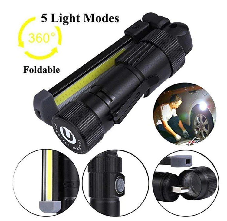 Aluminum Alloy Magnetic Work Light Waterproof Portable Rechargeable Cob Led Flashlight