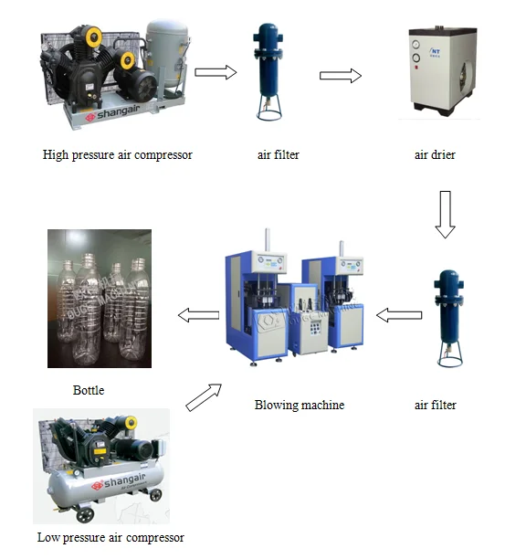 6.\tAir circuit system consists of movement and blowing so as to meet the needs of different air pressure, also to provide stable high pressure for blowing different shapes of big capacity bottles.