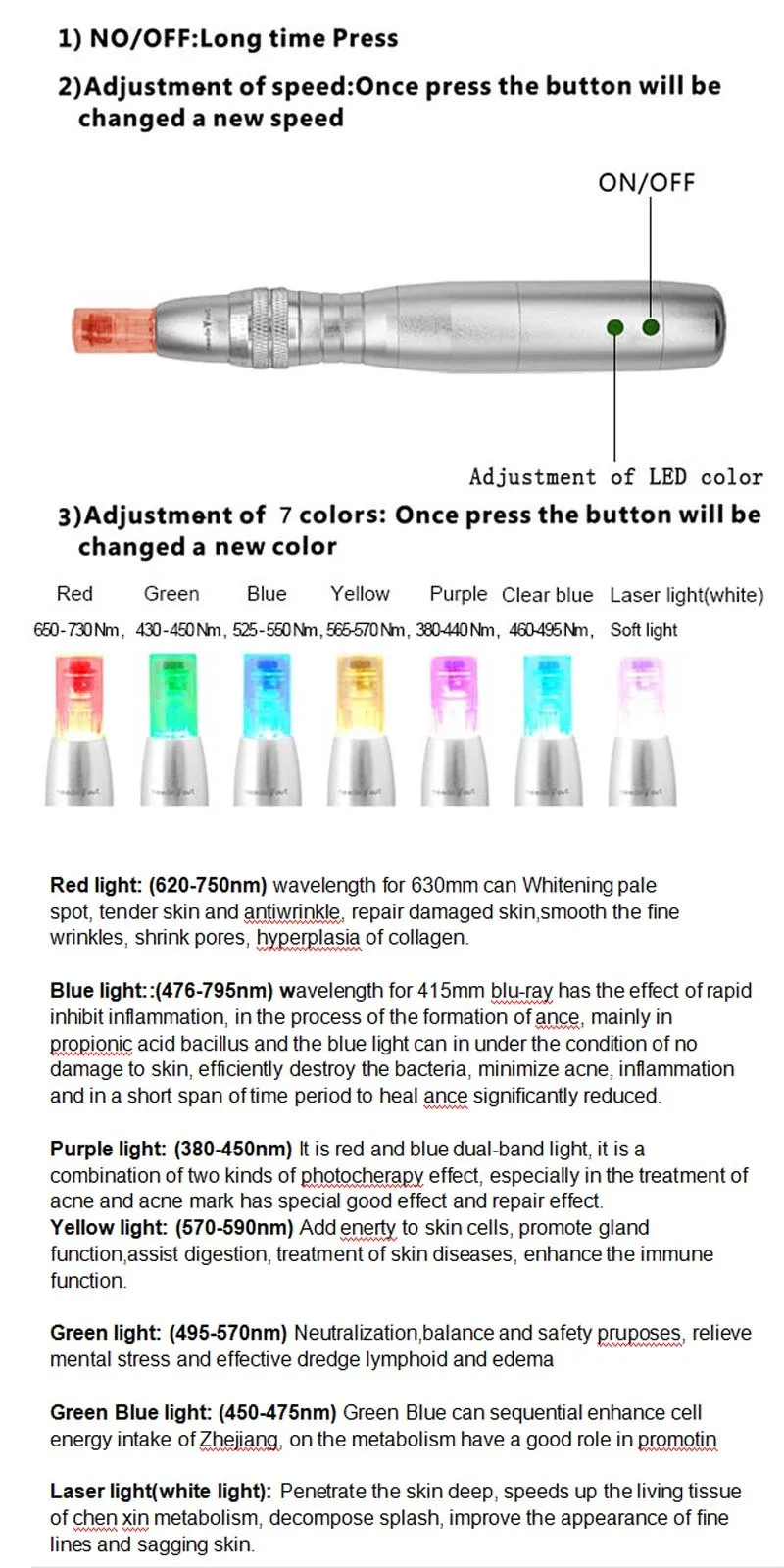 Led Color:red,blue,green,yellow,purple,clear blue,laser white