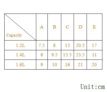 Capacity | 1.2/ 1.4/ 1.6 L | ||||