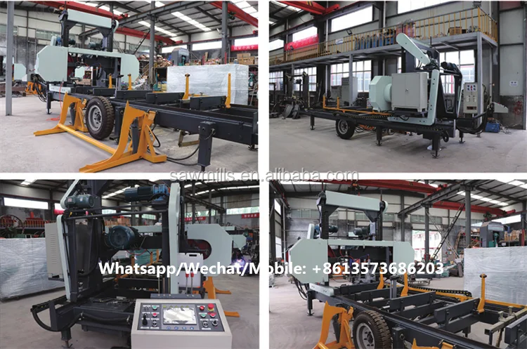 These wood working machinery horizontal portable band sawmills are widely used for hard wood and soft wood cutting, such as African rosewood, wenge, teak, kwila, merbau, tali, padouk, mahogany, oak, etc.