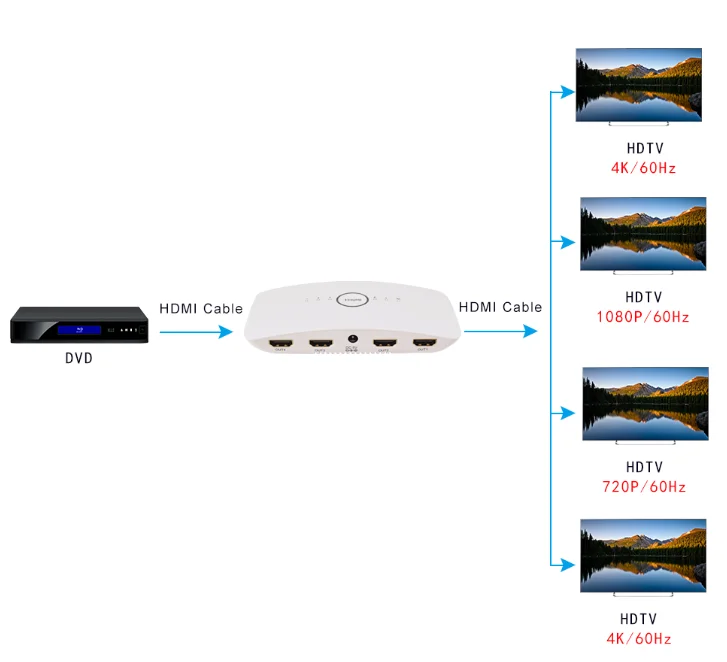 HDR HDMI splitter 1X4 Upscaler/Downscaler, HDCP2.2 18Gbps , Pick your output resolution 1080p, 720p, 4K@60Hz