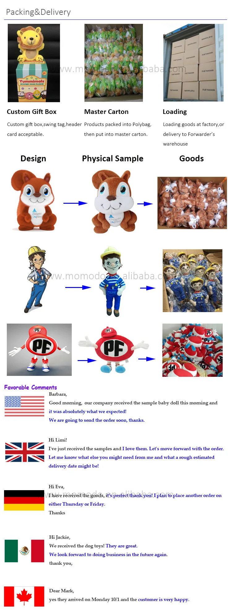 5) Stitch your private label&tag on the doll without extra charge;