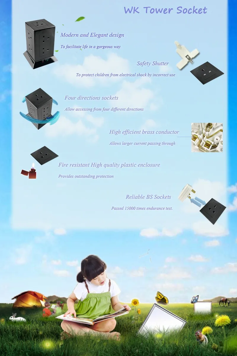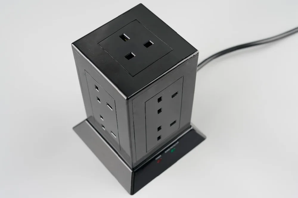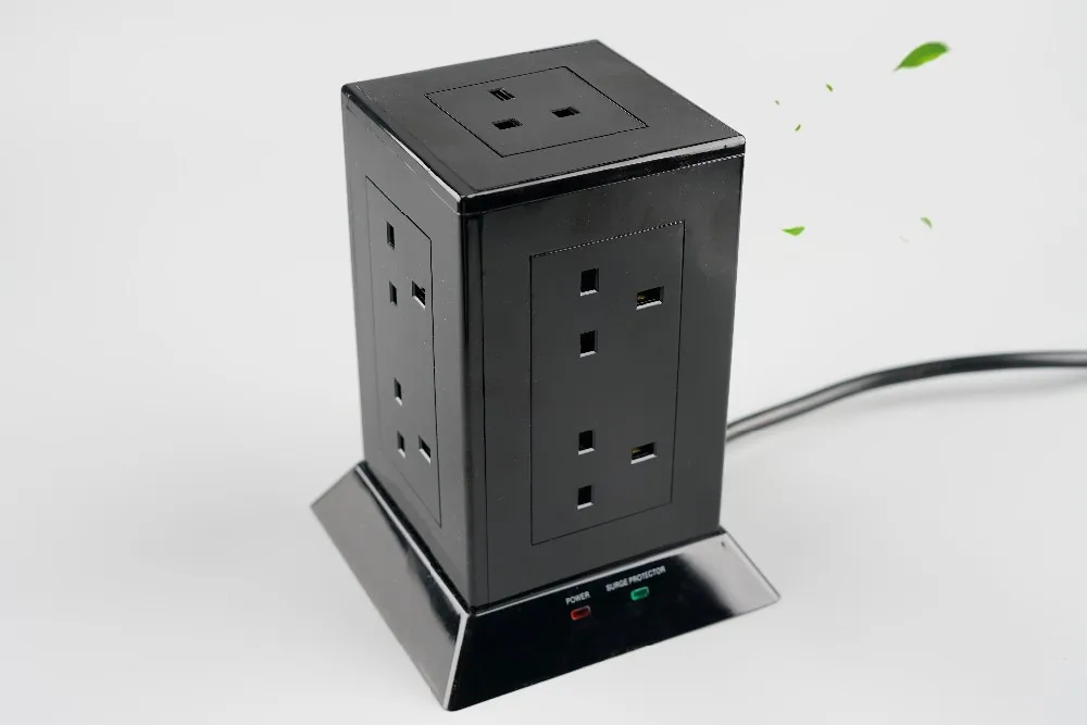 WK Pop BS Electrical Tower Extension Socket Outlets with 13A Fused UK Plug Top Black