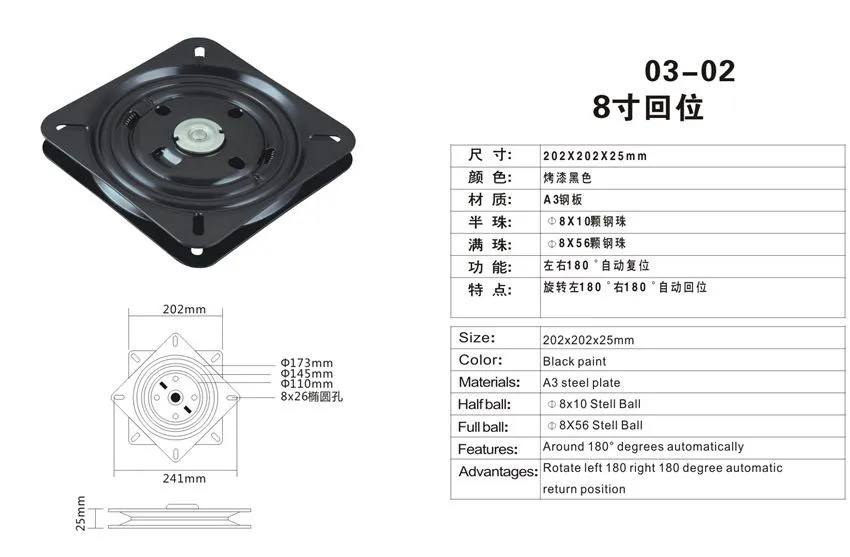 Office chairs bar stools recliners gliders chair swivel plate 180 degree auto return memory - 8 inch replacement mechanism