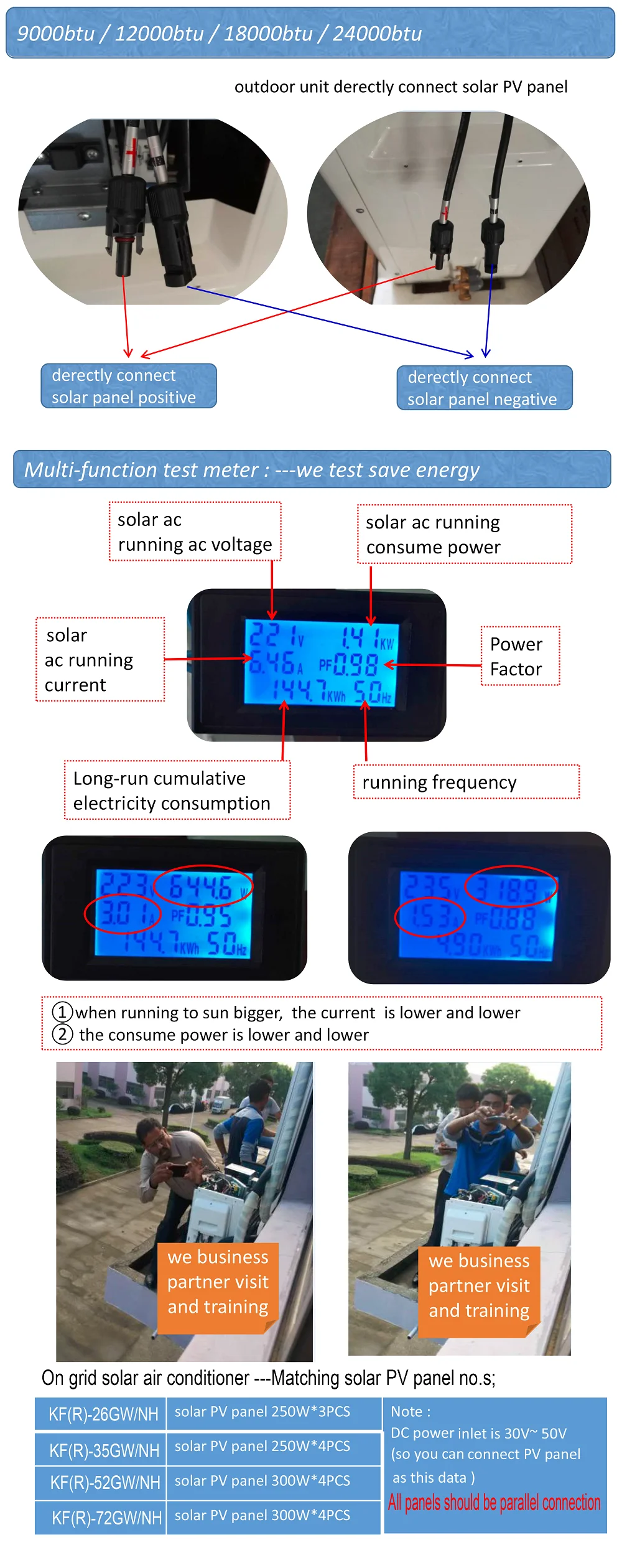 2.High energy efficiency: maximum up to SEER 36;Even if there is no sunshine,up to SEER 21.
