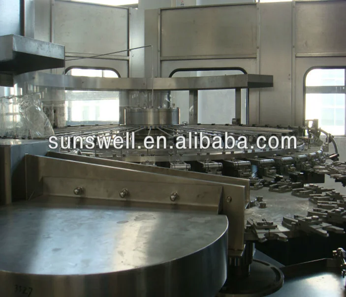 The machine is a full-automatic multiple-function washing, filling and capping unit. It is used in washing. filling and sealing all kinds of non-air drinks such as carbonated beverage ,fruit juice, oil & vinegar,wine,fruit wine, mineral water and pure water. The line has features of unique design,new style, complete functions,multi-purpose, convenient in operation, beautiful construction, high automaticity. It is the best filling equipment in China.