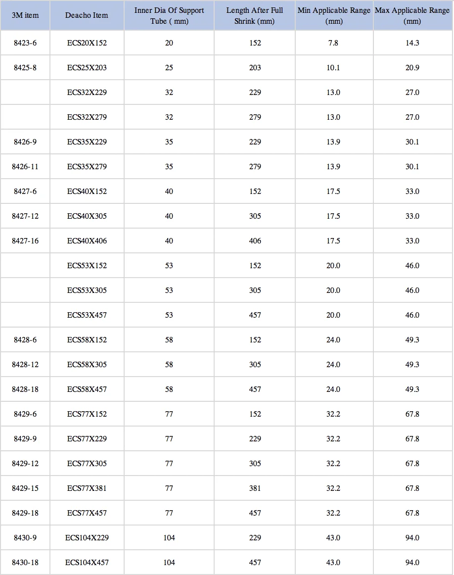 If the cable diameter is out of application range, a foam tape will been included is to increase the smallest cable diameter and assure the sealing of the clod shrink tube.