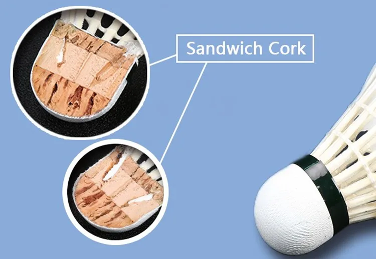 Third is 2 layer cork, it generally used for Senior or Intermediate shuttlecock.