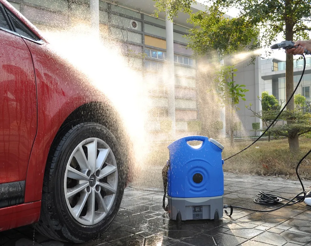 This Mini outdoor cleaner is very convenient to carry around, and its water tank could be used as accessory storage compartment when put upside down. Also it's powered by built-in lithium battery.