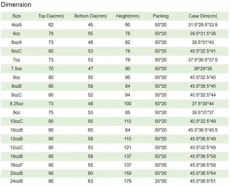 * Available in 4, 8, 10, 12, 16, 20 oz and 24oz