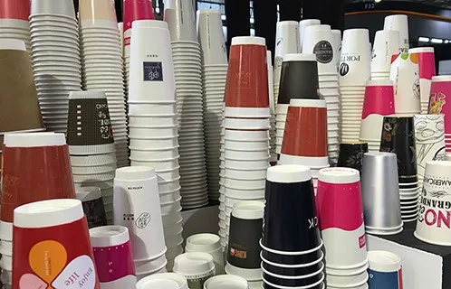 Custom printed PLA coated sugarcane coffee paper cup fan