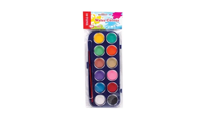 Children 12 Assorted colors round watercolor DIY oil paint set for kids with 1 artish brush water color cake palette in pvc box