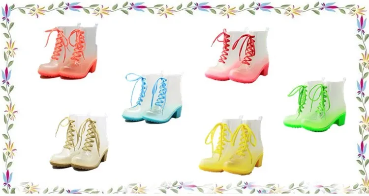 Wholesale Ladies Women Wedge Crystal PVC Plastic Heeled Jelly Rain Shoes