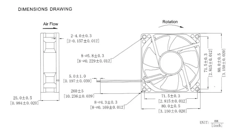Fan size:80x80x25mm