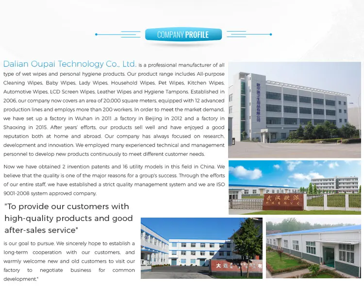 A: We are an ISO&CE approved manufacturer specialized in wet wipes.OEM & ODM service are available.
