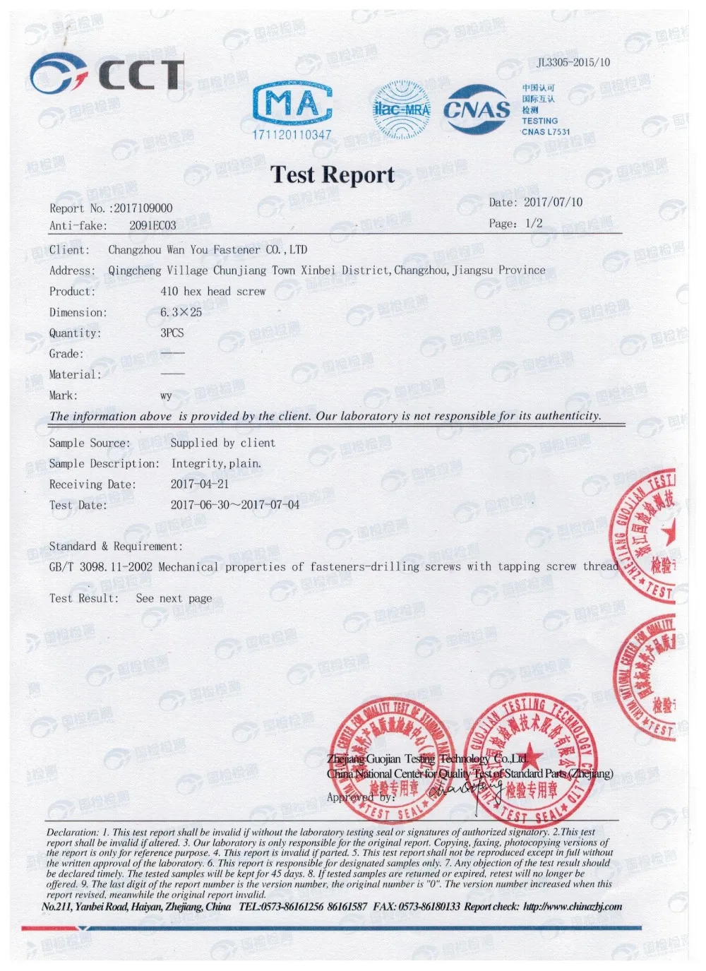 Changzhou Wanyou Fastener CO.,LTD ,a factory that specializing in manufacturing SS304/316/410/550 self drilling screw and tapping screw, decking screw , wood screw , timber screw, chipboard screw, MDF screw ,taptite screw , machine screw.