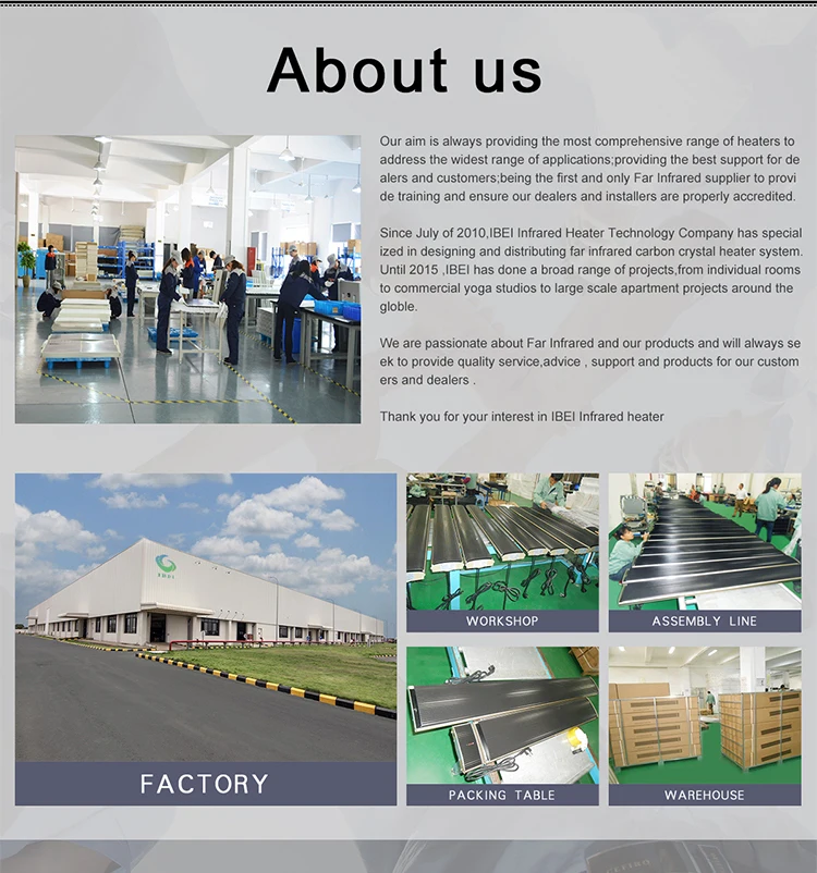 Since July of 2010, I.R Heating Industrial Co.,Ltd has specialized in manufacturing,designing and distributing Infrared heating system,Until 2015 ,we have done a broad range of projects, from individual rooms to commercial yoga studios to large scale apartment projects around the globe.Now we have become one of the largest manufacture in China.