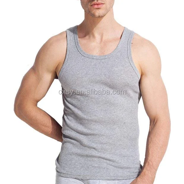 single jersey fabric 100 organic cotton tank top sleep wear sleeveless male undershirt tight mens grey vest