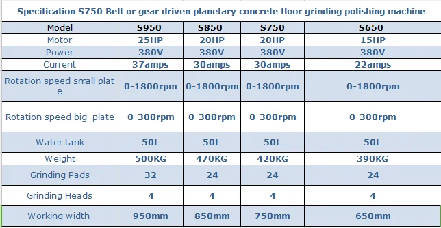 S750 Belt or gear driven planetary concrete floor grinding polishing machine