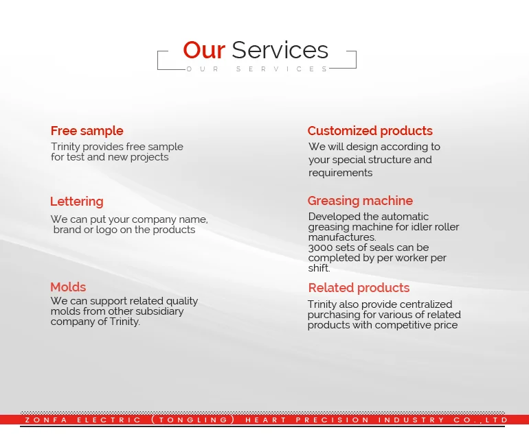 | Services | Accept customize and lettering! Free samples is acceptable! Provide centralized purchasing for various of related products including moulds, rubber ring, metal cover seal, bearings etc. with competitive price. | ||