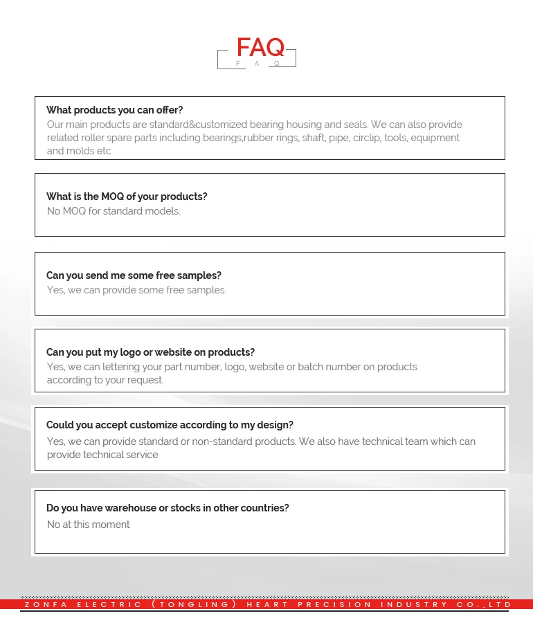 | Full set including | 1* Bearing housing ——SPHC Bearing housing/end cap only or seals only can be ordered! | ||
