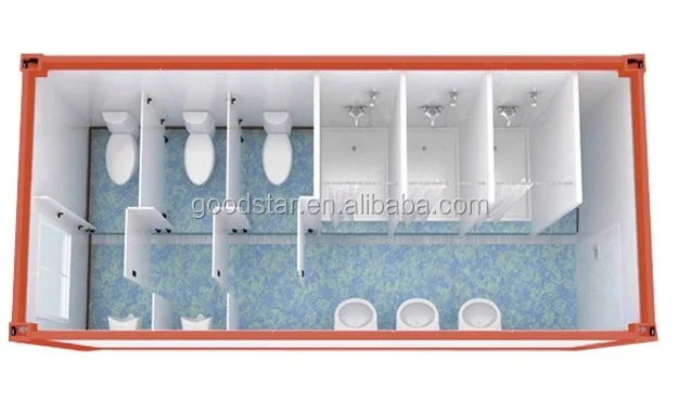 20FT quick assembling portable container toilet / lavatory house is a kind of modular convenient house, built with high quality steel frame and sandwich panel. It can be designed and built according to the requirement of the construction site and project. This style of container room is being welcomed and accepted by more and more people as its energy saving, environmental protection, low carbon, simple in design and flexible assembly.