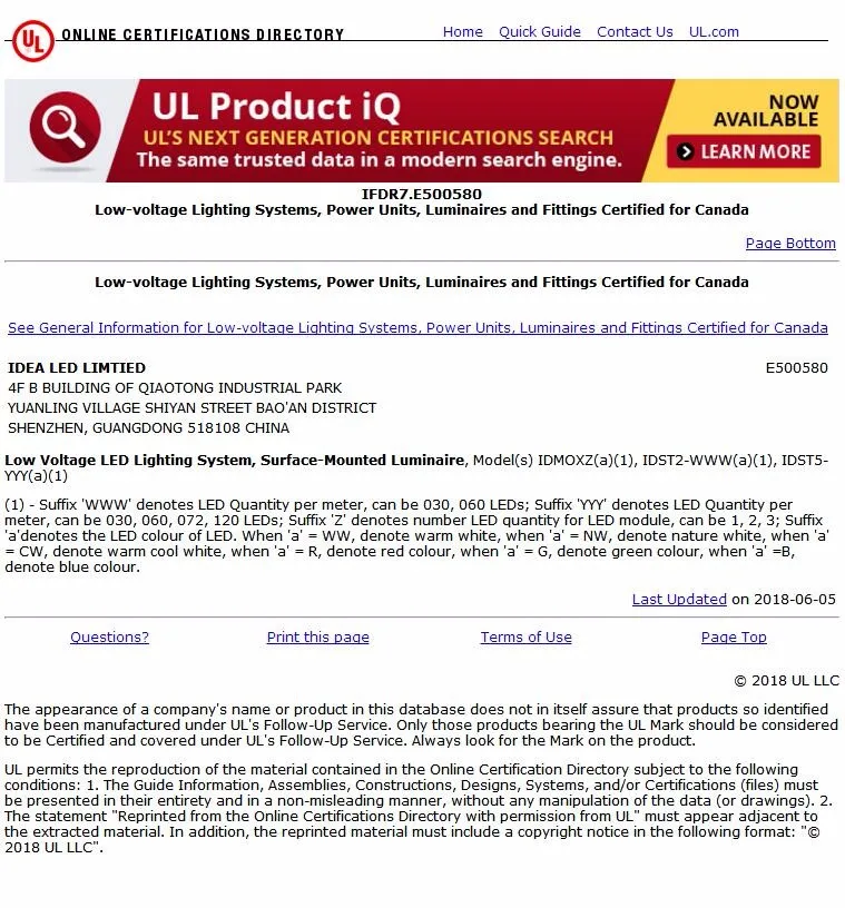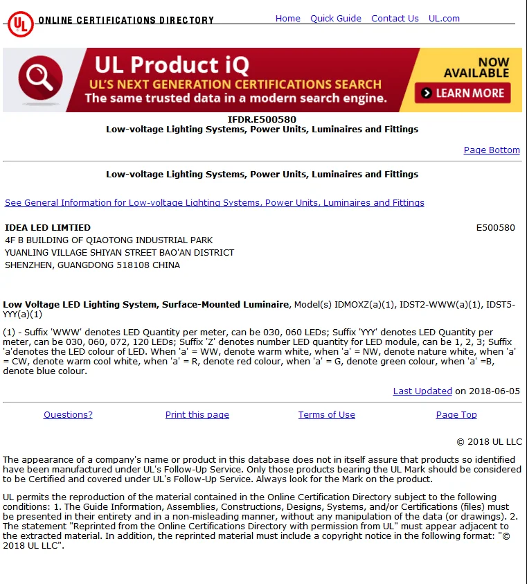 E500580 UL, cUL listed strips