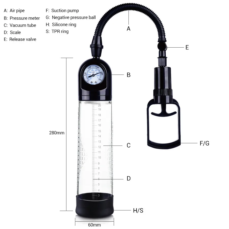 2018 Best Selling manual manometer vacuume rection penis enlargement penis pump device