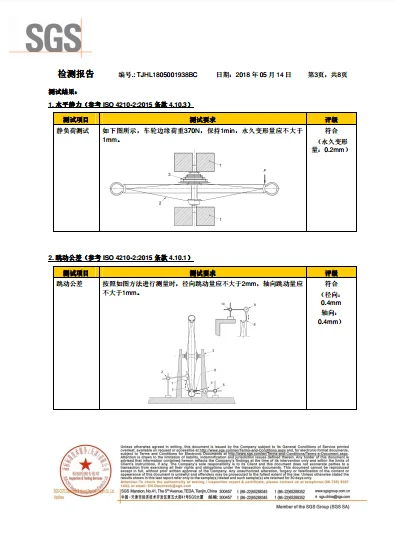 Passed the authority of the national bicycle test center testing by SCS."the quality is first " is oursolgan and culture. .