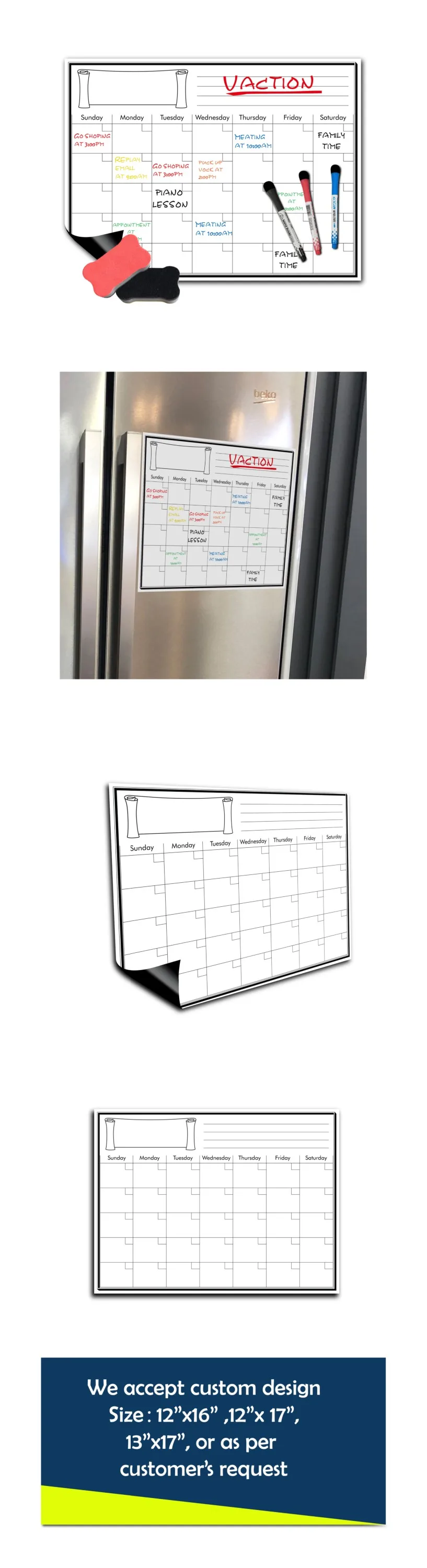 We have produced the dry erase calendar for many years. In the early beginning,