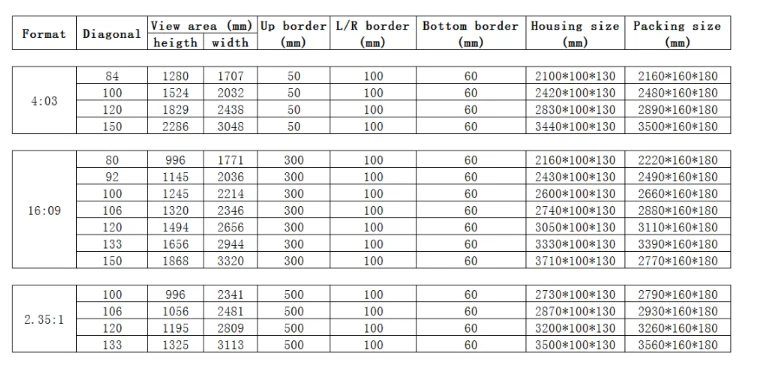 1)Electric/motorized screen for home theater and commercial presentations
