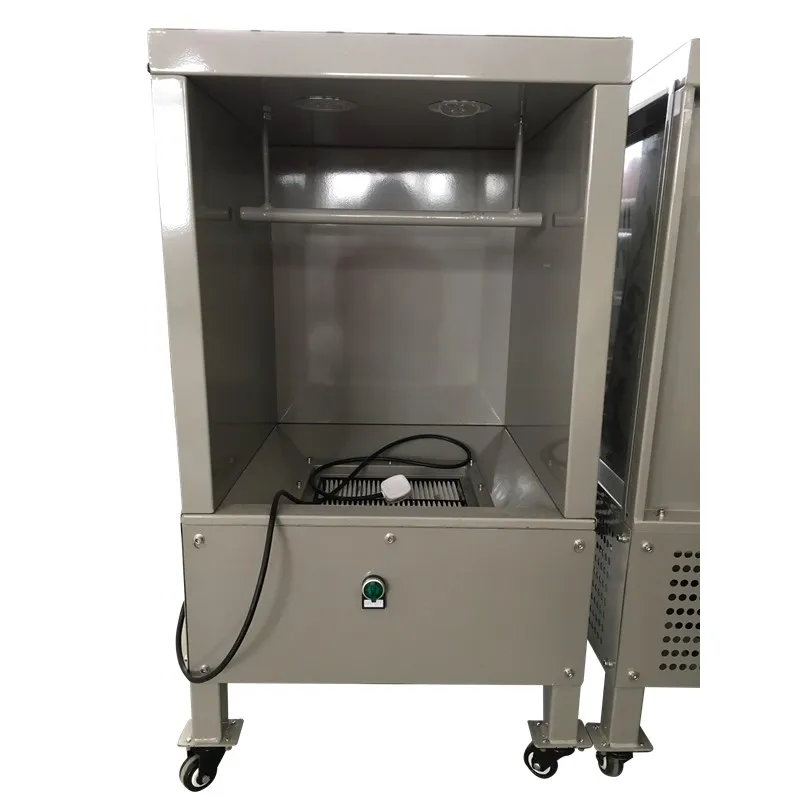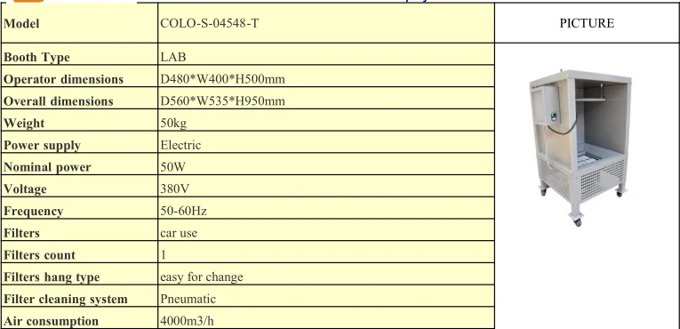 This small spray booth is suitable for laboratory spraying, test spraying and small workpiece spraying. Small size, light weight, with the advantages of easy movement. One piece of 100% polyester filter recycling, improve the utilization of powder.