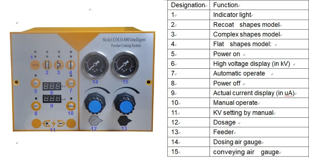 KF-800 powder coating gun delivers consistent and uniform powder output that ensures quality results, based on Kafan 10 years design and manufacture, kf-800 powder coating gun provides easy operation and efficient working. With three re-set mode: flat mode, corner mode, re-coat mode.