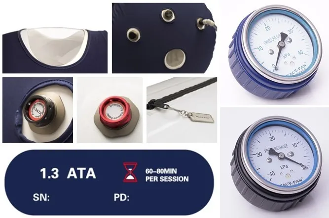 All zippers, pressurization/depressurization valves and external/internal pressure gauges are double-sided, give the patients a chance to be fully relaxed and allow themselves to a state of tabula rasa during the session. The management of training of the MACY-PAN hyperbaric oxygen chamber can be done by anyone in 15 minutes.