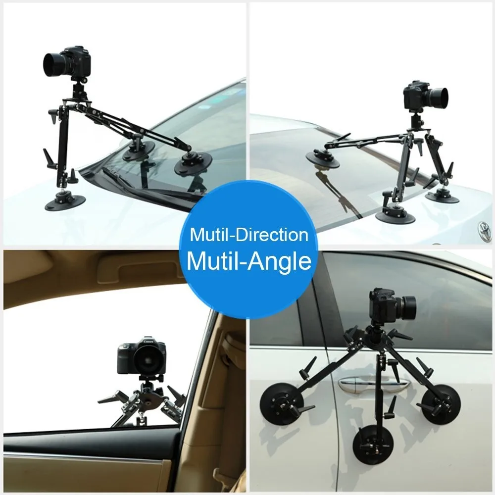 ★High-quality rubber, solid and stable adsorption---High-quality rubber, 15cm in diameter, thick design, the single suction cup bearing 60kg, so the three sucker total loading 180kg, easy to deal with different shooting situations. Common to any equipment, general cameras, SLR cameras, DV and other photographic equipment