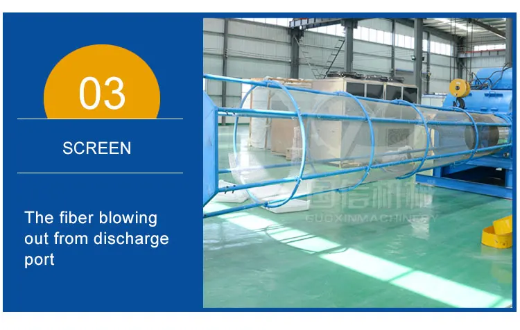 3. Breaking principle:The material is rotated, stirred and rubbed into fiber by machine, come out from outlet.