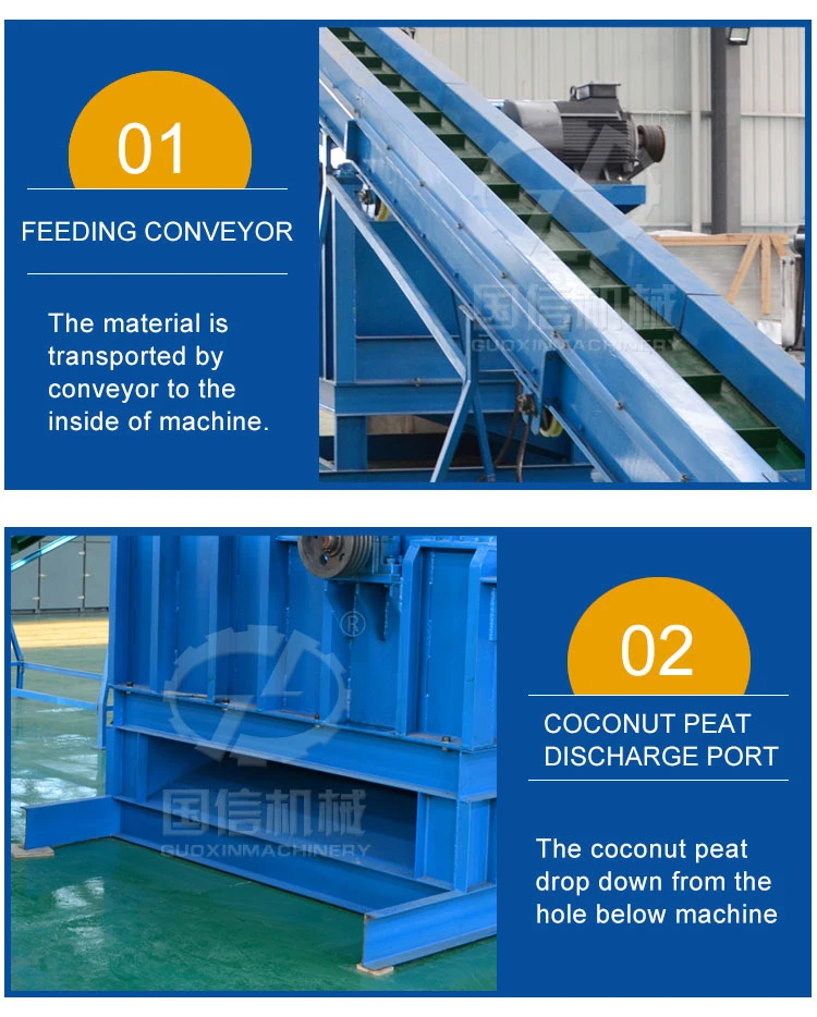 Function: Separate the coconut /palm long fiber and residual peat