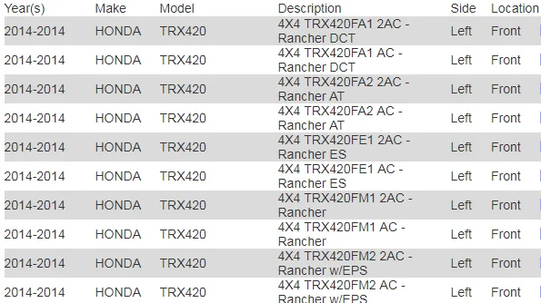 FOR 2014-2016 HONDA RANCHER TRX420 LEFT