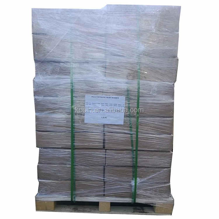 Polyurethane Conveyor belt skirting is a specifically designed polyurethane sheet, used as a sealing strip on conveyor system loading, transfer and discharge points to direct material onto the conveyor belt and reduce spillage. This modified polyurethane type strip material will reduce spillage, lower dust emissions, and decrease belt damage. By virtue of extremely tough resistant to abrasion, cuts, tears and impact, polyurethane conveyor skirting lasts an average of 3-5 times longer than rubber skirt equivalents. It's ideal for mining, aggregate, foundries and all lighter duty industries as well.