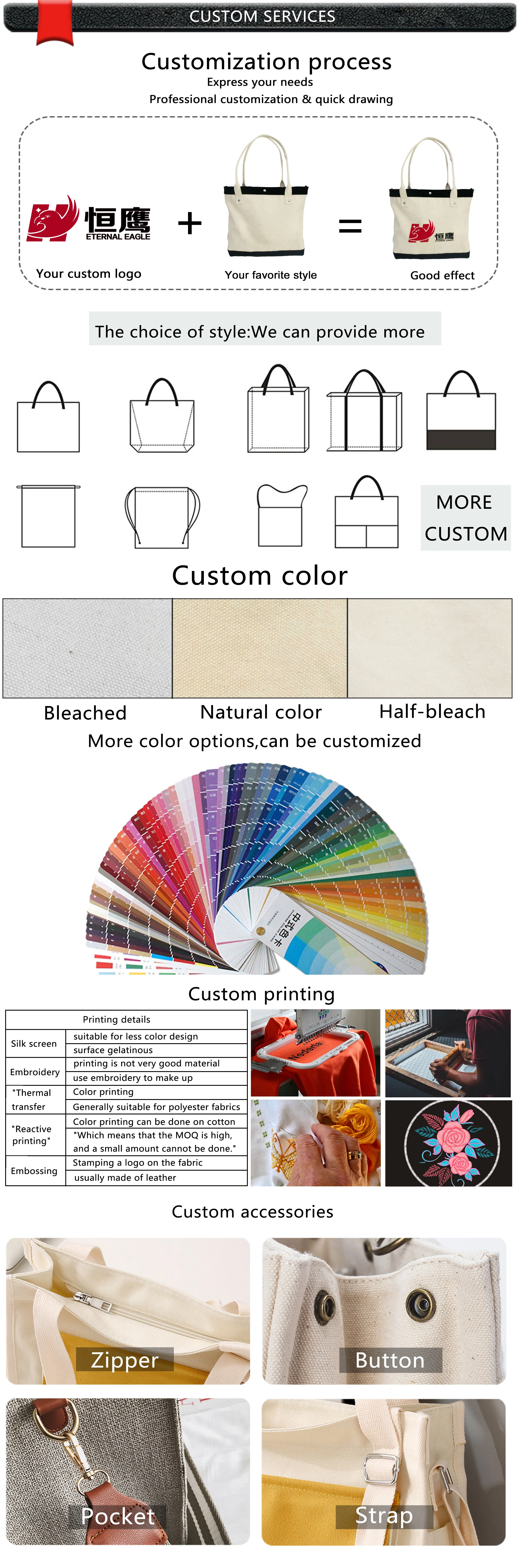 1. Free Design, No Extra Cost | 1. Bag type. |