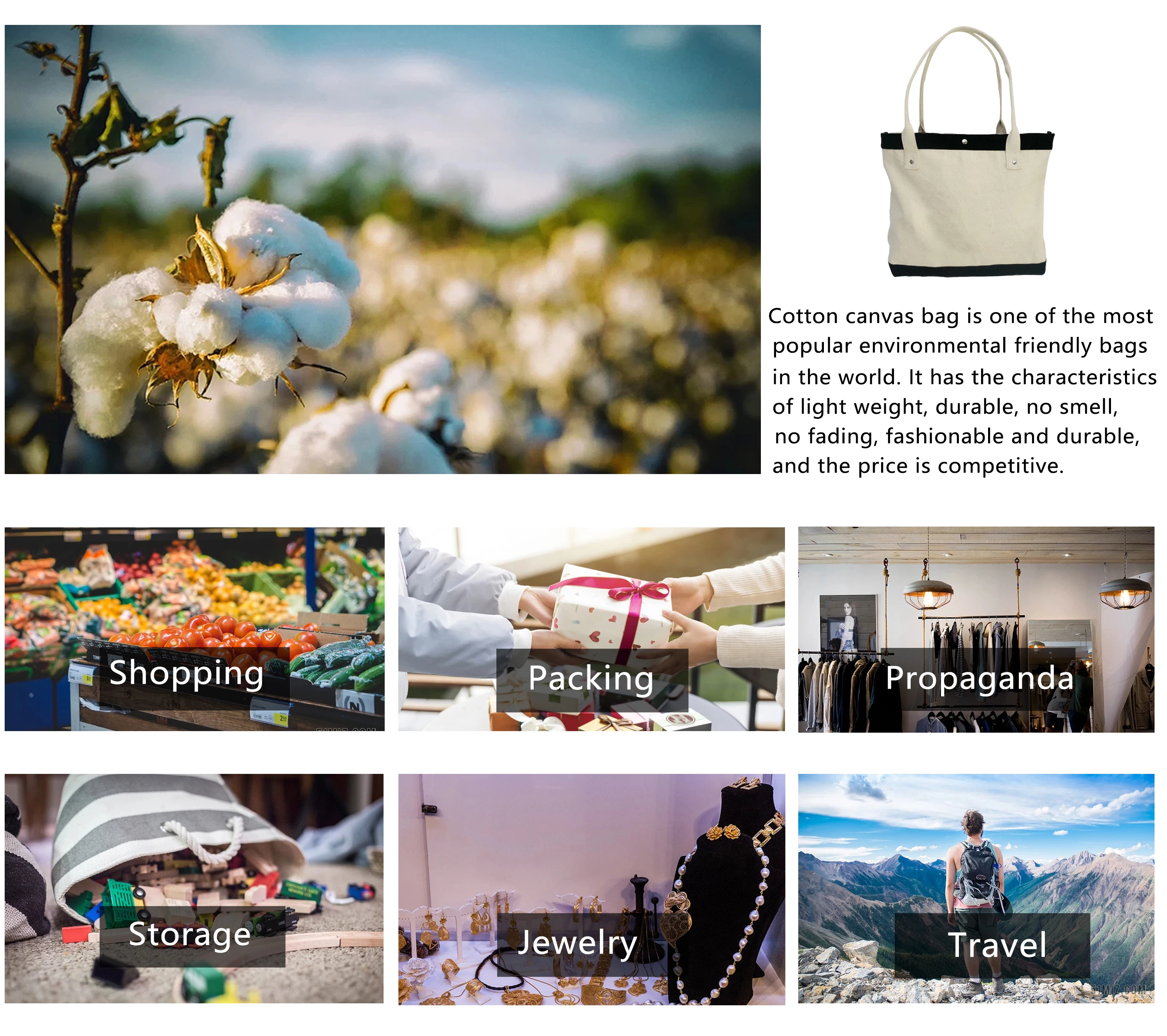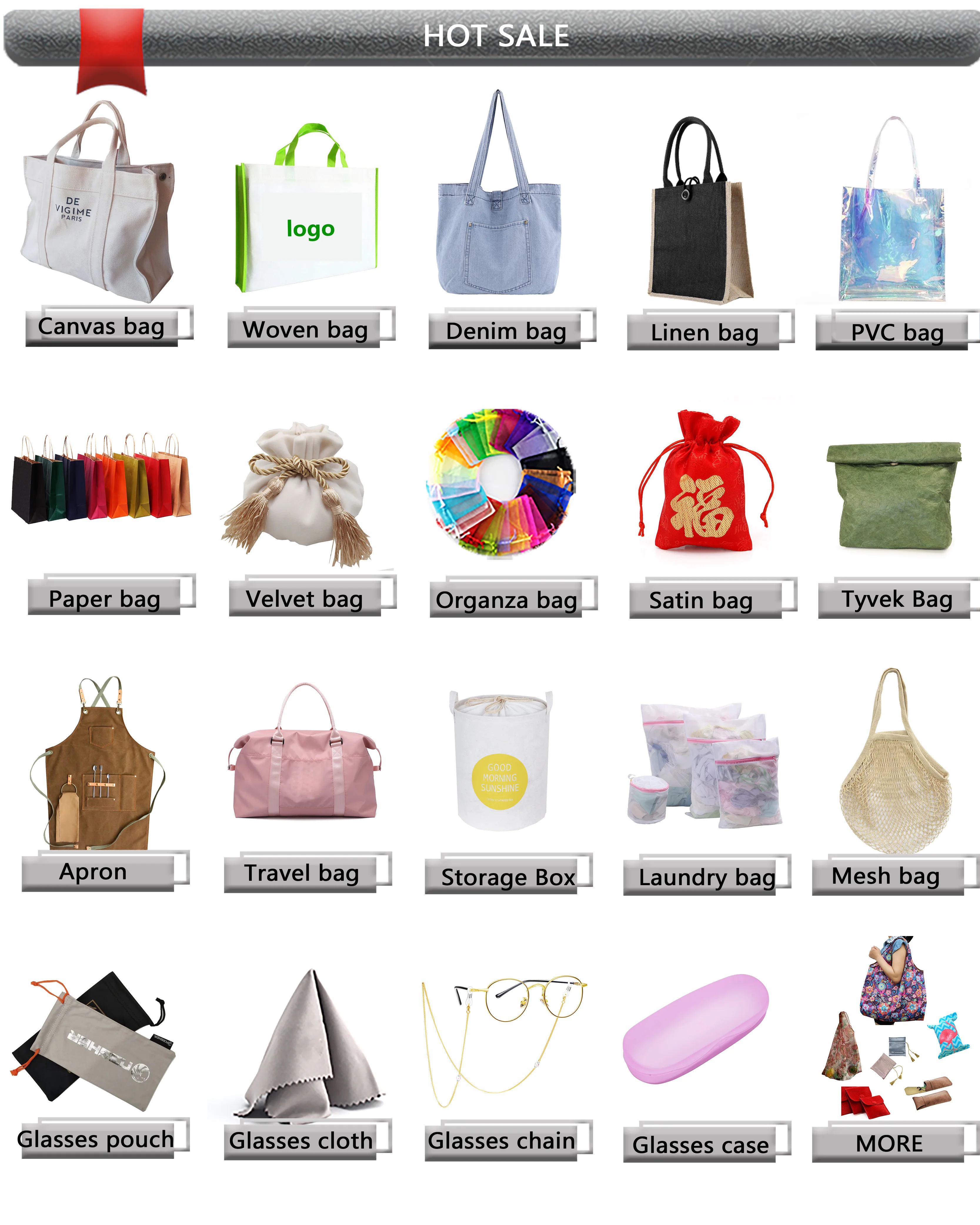 Material | Nonwoven, woven, cotton, canvas, polyester, nylon or others |