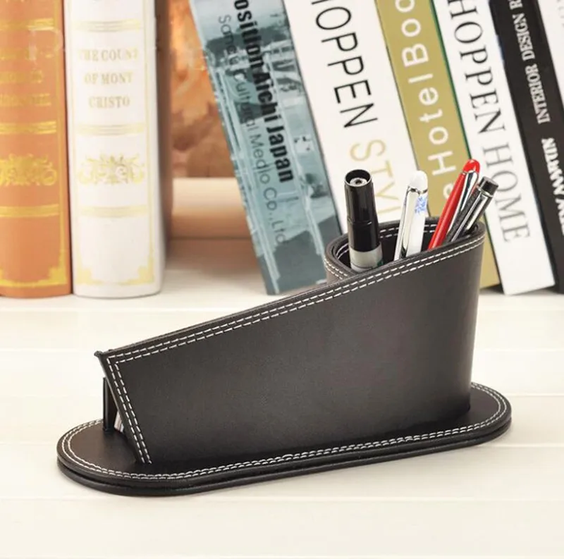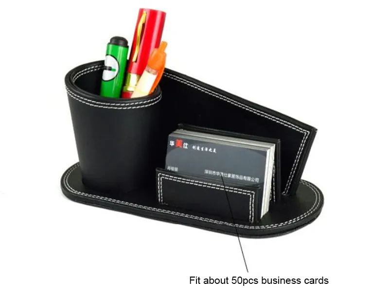 Dreamtop DTF167 customized design stationery school office card holder PU leather desk pen holder for business