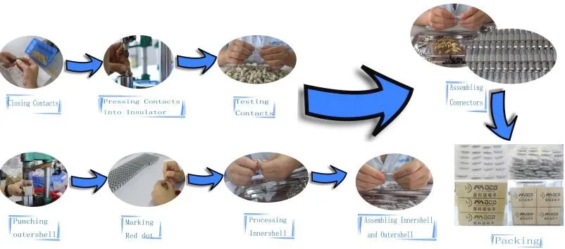 Each connector in a PE bag. every 50 or 100 pcs of connectors in a small box (size:20cm*15cm*6cm), every 6 small boxes in a carton(size:30cm*20cm*20cm)