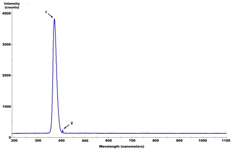UV wavelengths typically are measured in nanometers (nm). Nanometer, a unit of length, is equal to one billionth of a meter. UV light-emitting diodes (LEDs) have a narrow spectral output centered on a specific wavelength, +/- 15nm, with typical commercial UV LED lamps emitting at 365nm, 385nm, 395nm, or 405nm wavelengths.