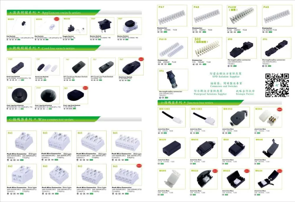 We are determined to become the high-quality connectors and switches manufacturing experts, the products include a variety of connectors, switches, junction boxes and other lighting plastic