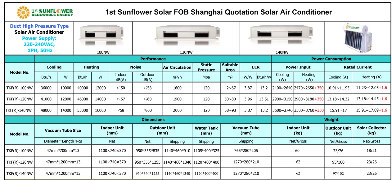 Description:TKF(R)-140NW 48000btu Duct High Pressure Type Solar Air Conditioner With Solar Collector Or Solar Flat Panel With Grid Power For Refrigeration