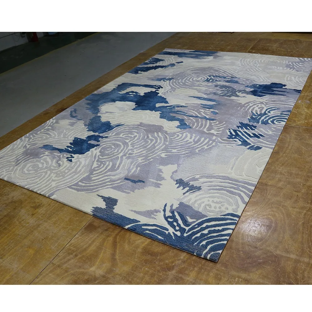 Wholesale price high end blue and grey jacquard rose handmade large luxury rug carpet